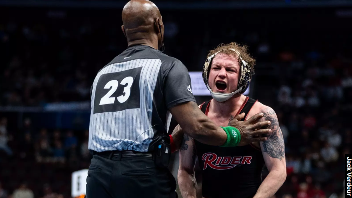 Zurawski met Hogan for the second time this season after winning their regular-season matchup 6-1. With the team race tied entering the match, Rider needed a victory from Zurawski and a loss from Lock Haven at heavyweight to clinch the team title.